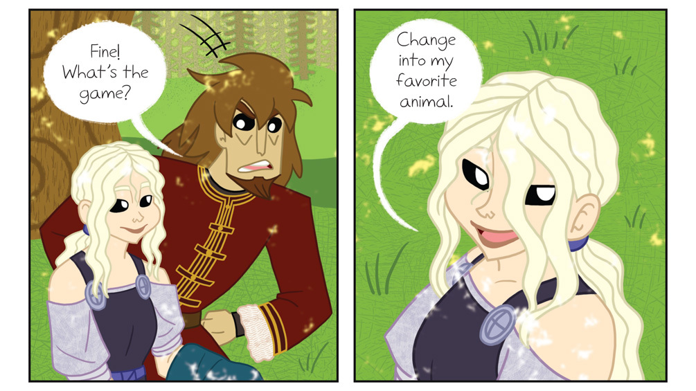 A mysterious young woman can see through Loki's shapeshifting magic, but before she'll tell him how, she wants to play a game with him.